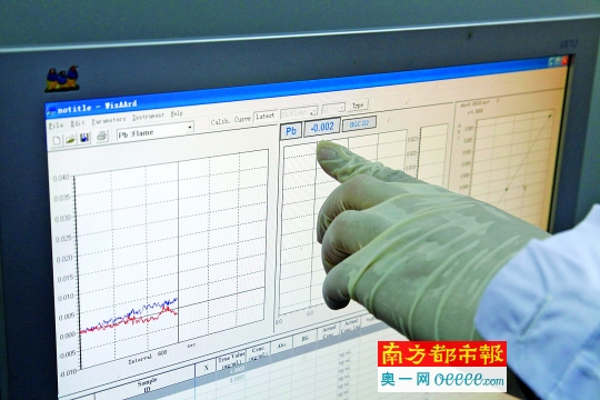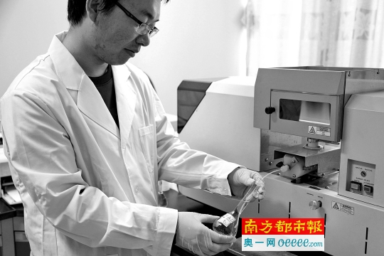 4 .程工正在使用原子吸收設(shè)備檢測(cè)水樣品。