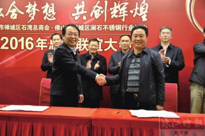 臨近歲末,石灣在推動千億“不銹鋼小鎮(zhèn)”的行動中再落兩子。12月30日晚,2016石灣總商會暨不銹鋼行業(yè)協(xié)會總結(jié)聯(lián)誼會召開,佛山(瀾石)不銹鋼標準大數(shù)據(jù)項目正式啟用,誠德特鋼有限公司、捷聯(lián)誠不銹鋼等重量級企業(yè)正式簽約進駐不銹鋼總部大廈,兩大項目的簽約啟動,將使石灣不銹鋼產(chǎn)業(yè)生態(tài)更為完善,為“不銹鋼小鎮(zhèn)”提供產(chǎn)業(yè)基礎(chǔ)。